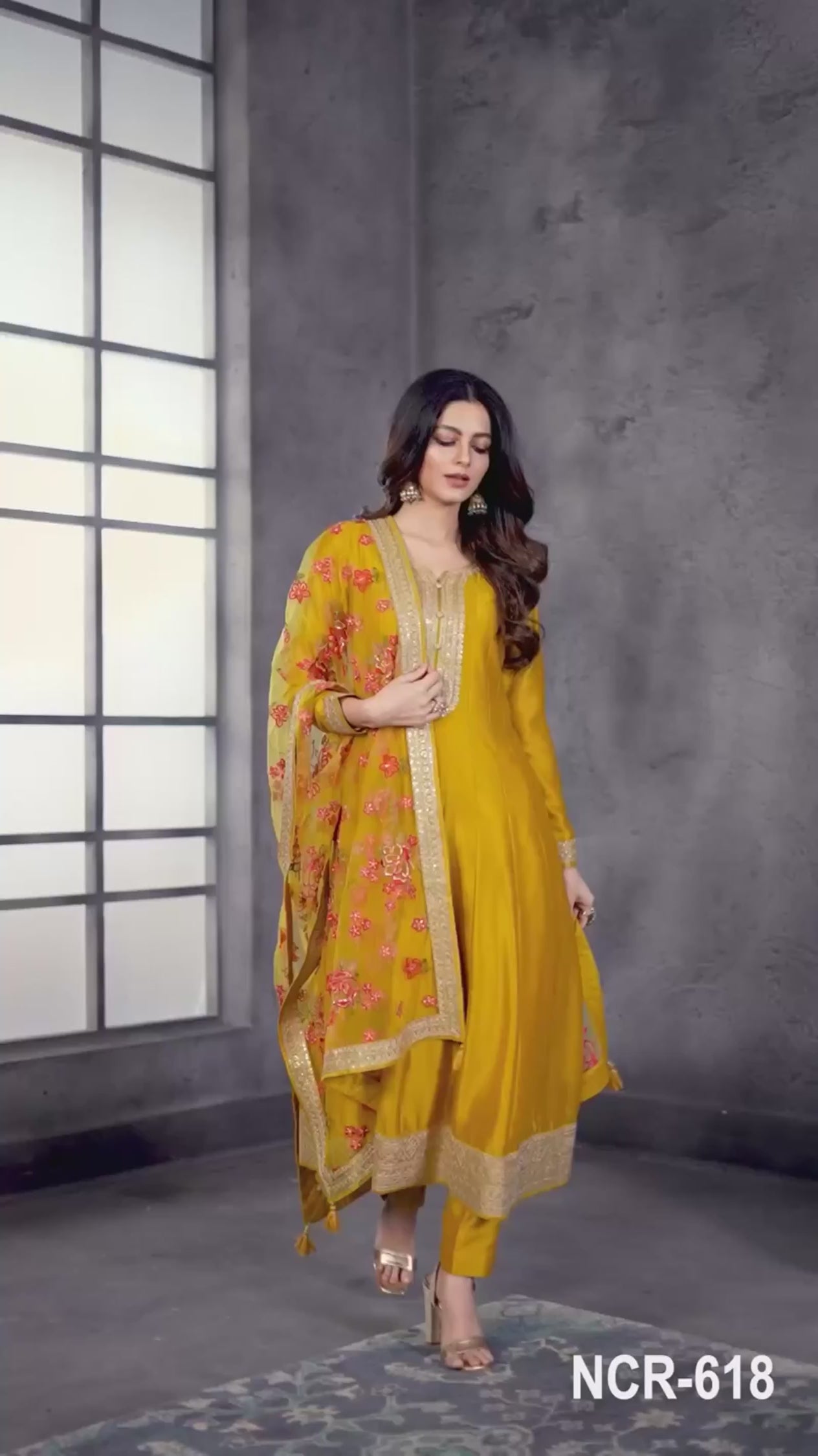 Turn Heads In Taruni’s Mustard Anarkali Set In Premium Silk, Paired With A Net Dupatta And Adorned In Regal Zari-Sequence Embroidery.